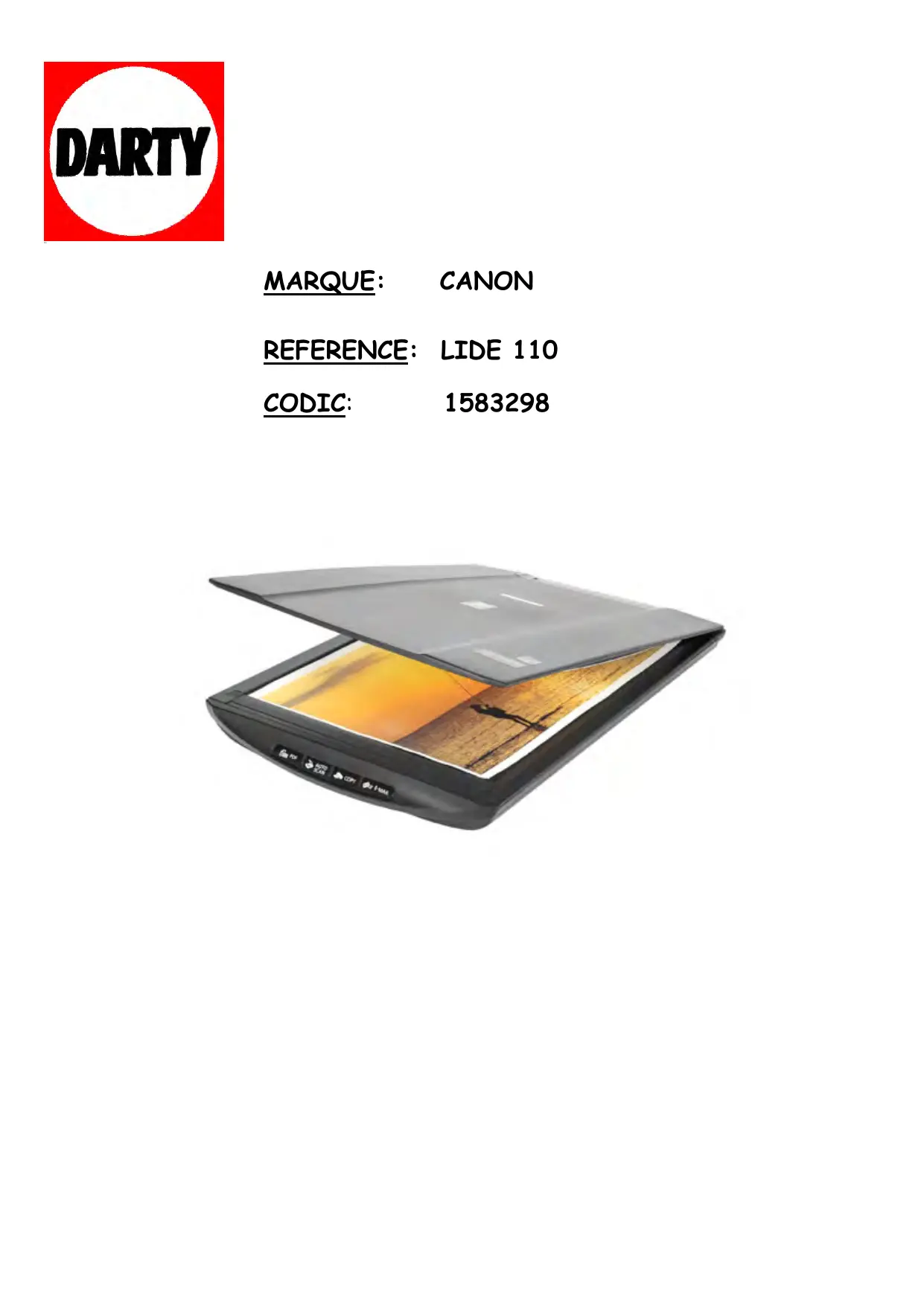 CANOSCAN LIDE 110 - Scanner CANON - Notice d'utilisation et mode d'emploi gratuit