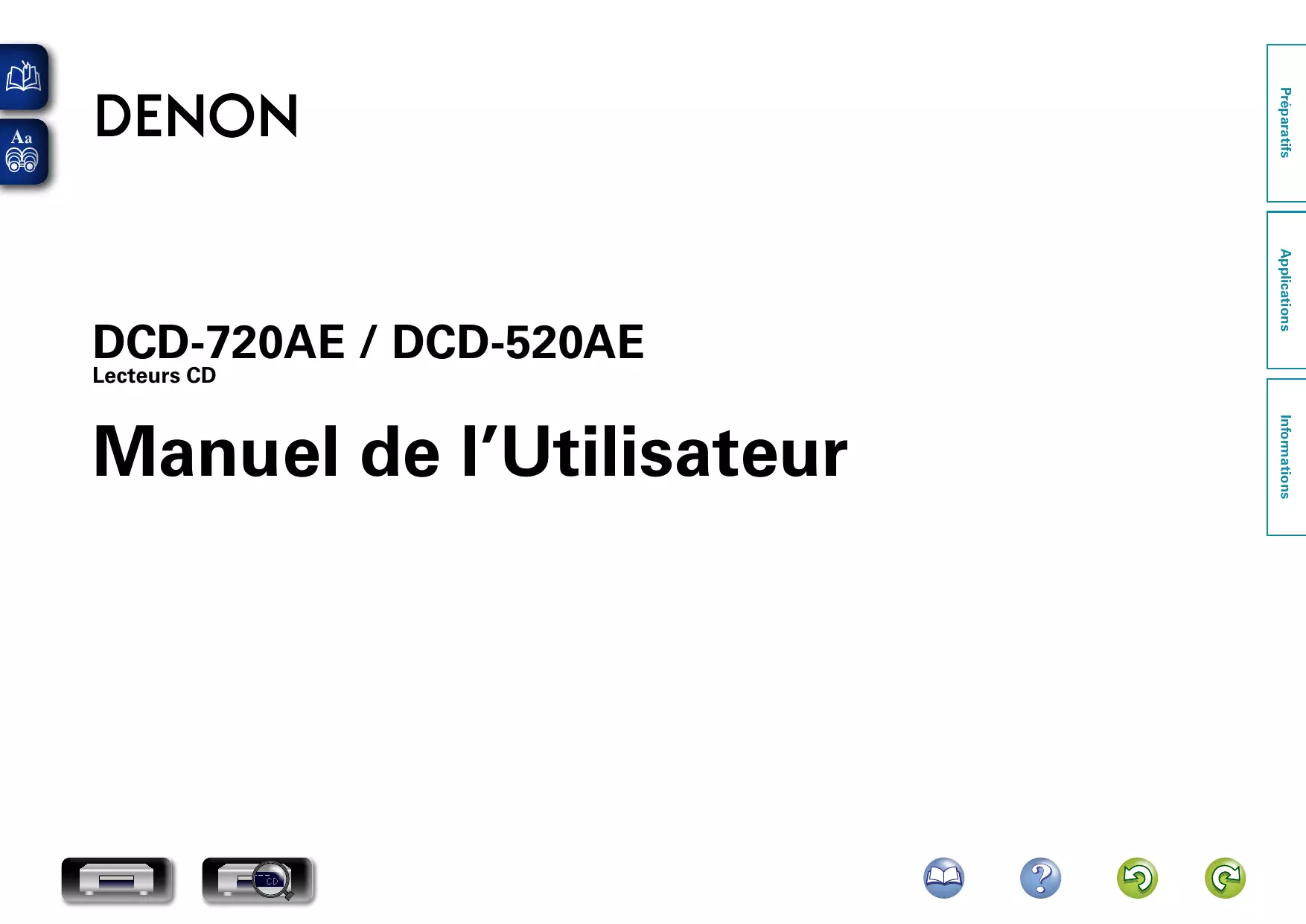 Téléchargez la notice de votre Lecteur CD au format PDF gratuitement ! Retrouvez votre notice DCD-720 - DENON et reprennez votre appareil électronique en main. Sur cette page sont publiés tous les documents nécessaires à l'utilisation de votre appareil DCD-720 de la marque DENON.