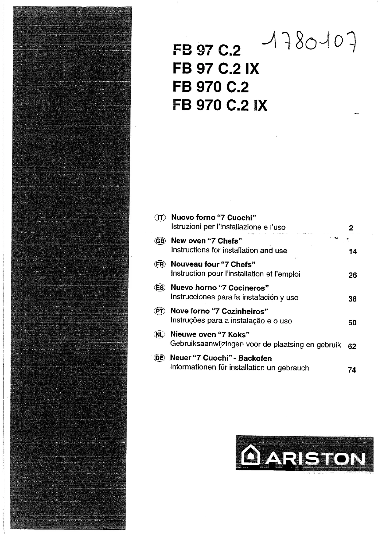 Retrouvez gratuitement la notice de l'appareil FB 970 C.2 IX INOX ARISTON au format PDF.