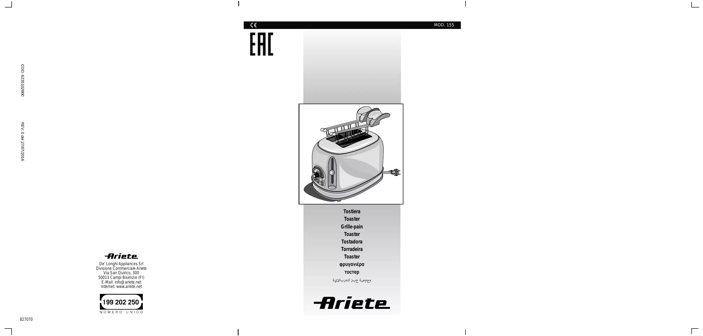 VINTAGE VERDE 155 - Grille pain ARIETEREFERENCE - Notice d'utilisation et mode d'emploi gratuit