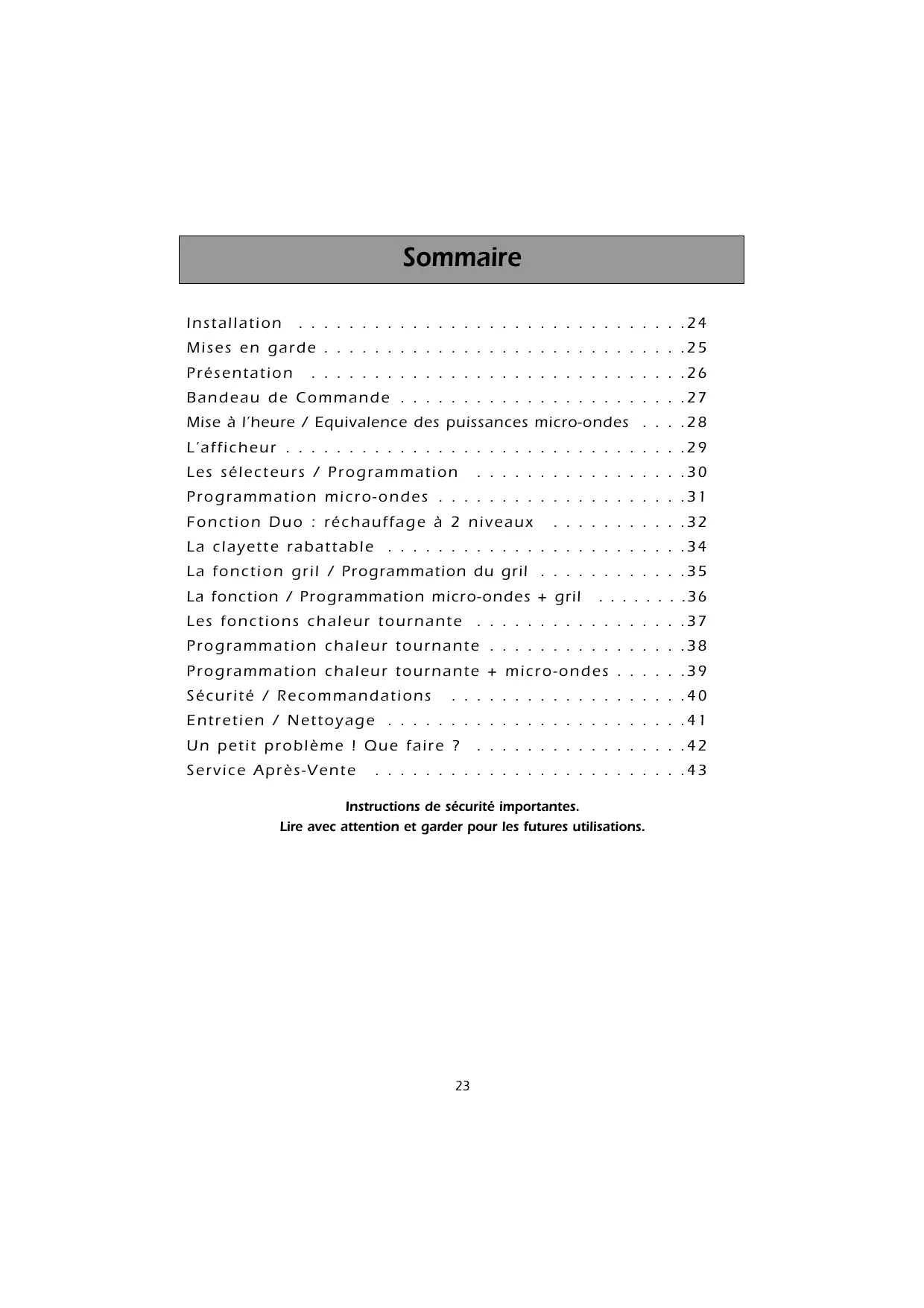 | Caractéristiques techniques principales | Fonction micro-ondes, fonction grill, fonction convection |
