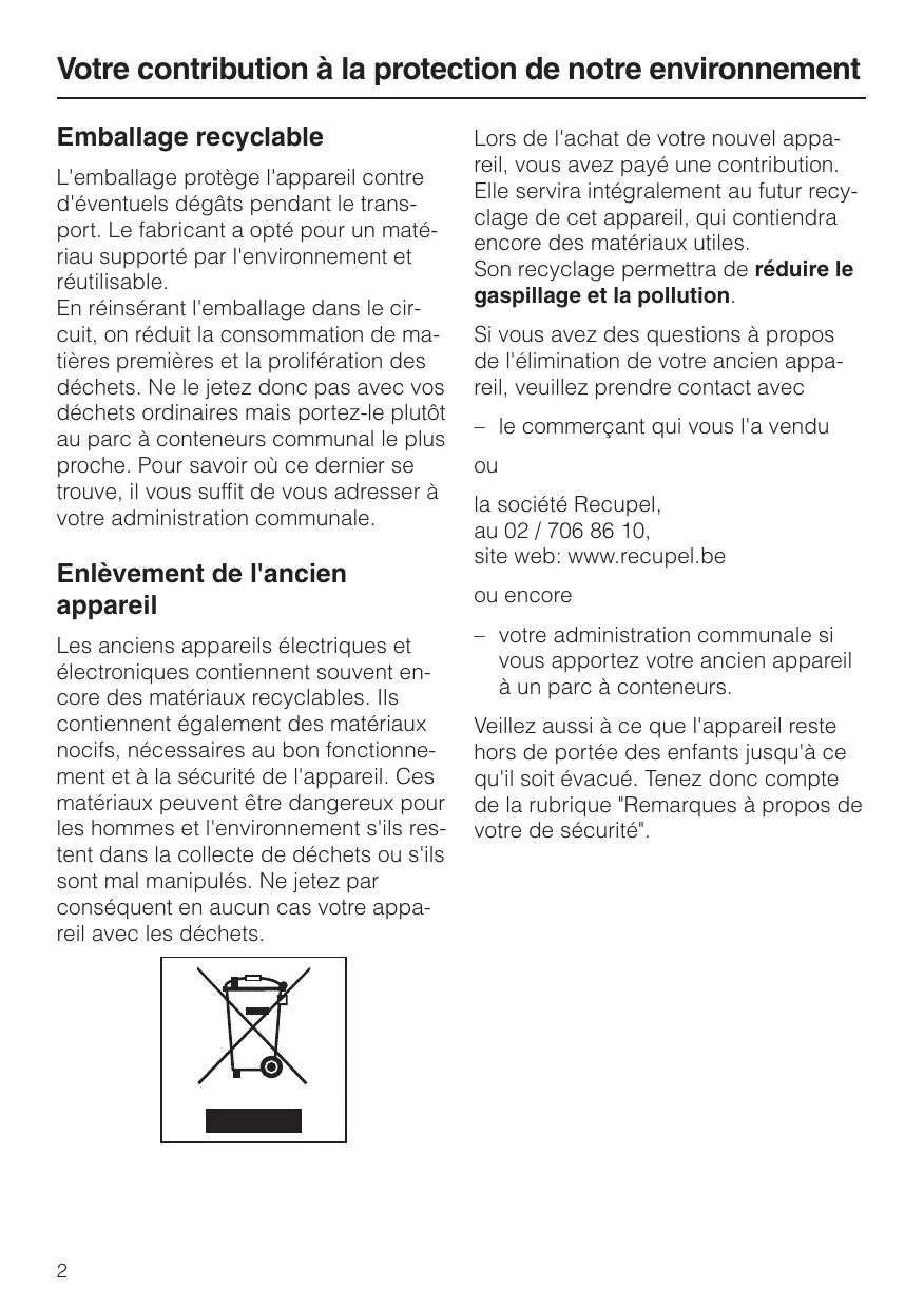 En réinsérant l'emballage dans le cir-cuit, on réduit la consommation de matrières premières et la prolifération des déchets. Ne le jetez donc pas avec vos déchets ordinaires mais portez-le只想 au parc à conteneurs communal le plus proche. Pour savoir où ce dernier se trouve, il vous suffit de vous adresser à votre administration communale.