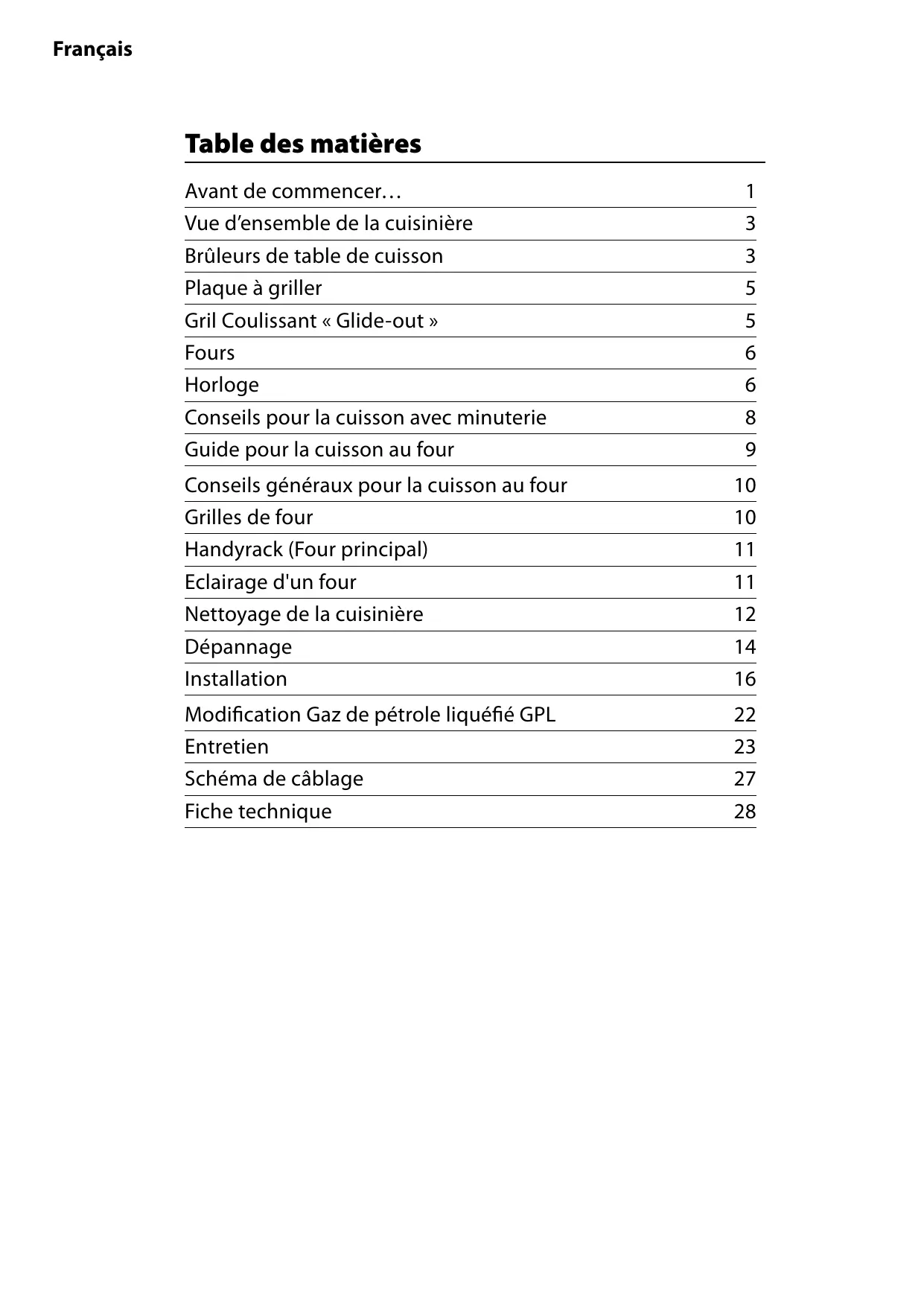 Conseils généraux pour la cuisson au four Grilles de four Handyrack (Four principal) Eclairage d'un four Nettoyage de la cuisinière Dépannage Installation