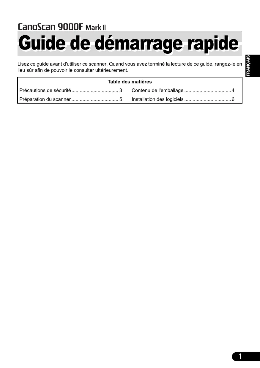 9000F MARK II - Scanner CANON - Notice d'utilisation et mode d'emploi gratuit