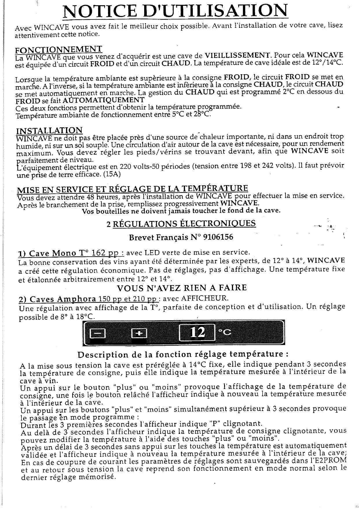 AMPHORA 150 PP - Cave à vin WINCAVE - Notice d'utilisation et mode d'emploi gratuit