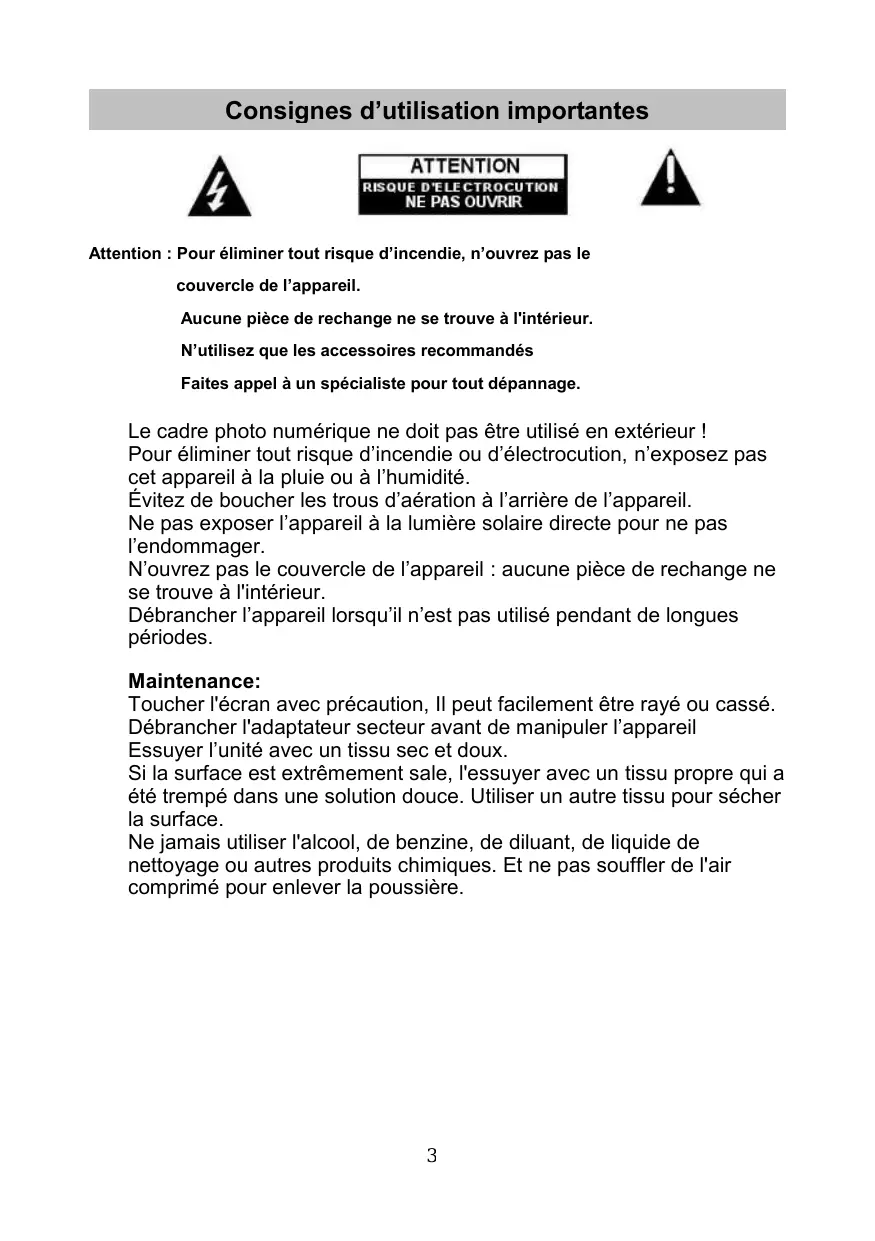 Attention: Pour éliminer tout risque d'incendie, n'ouvre pas le