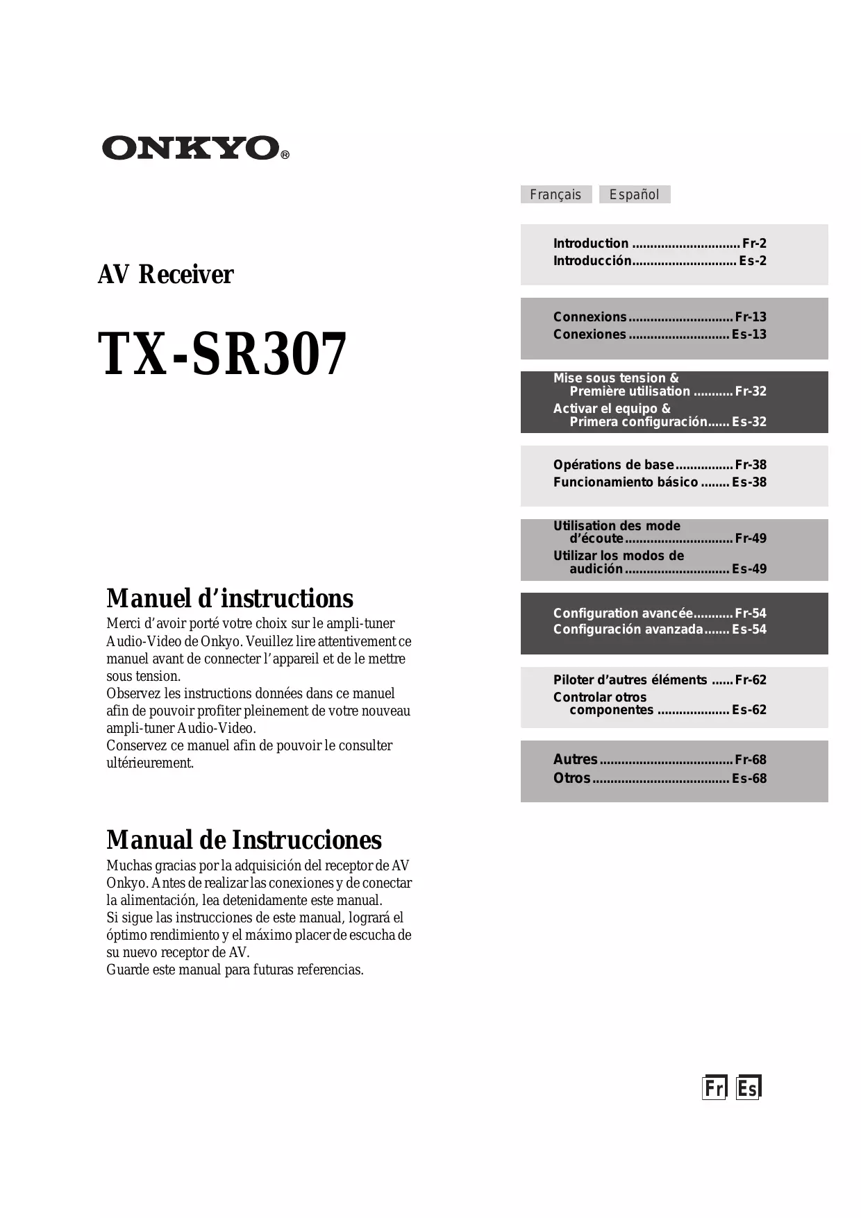 TX-SR307B - Amplificateur audio-vidéo ONKYO - Notice d'utilisation et mode d'emploi gratuit