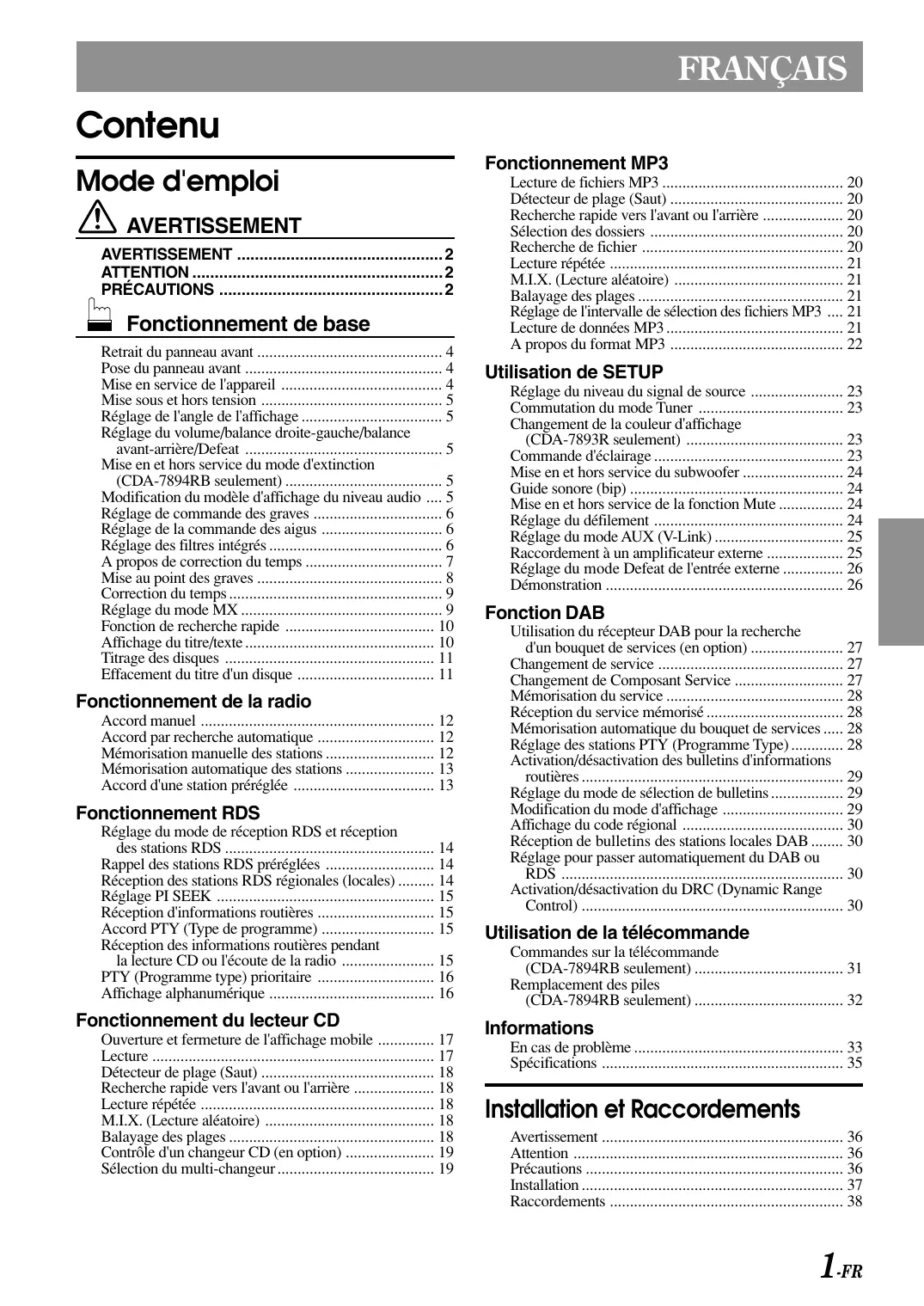 Retrouvez gratuitement la notice de l'appareil CDA-7894RB ALPINE au format PDF.