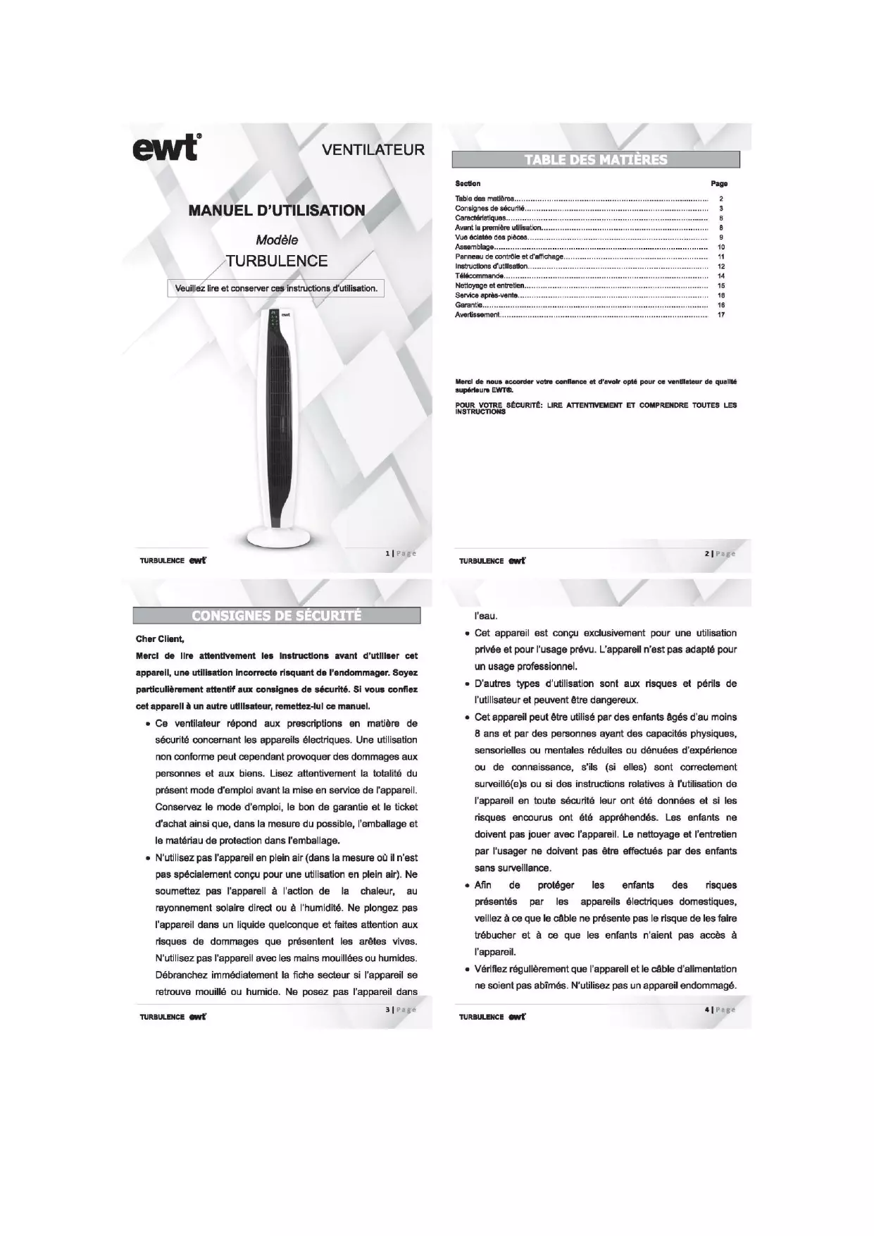 TURBULENCE - Ventilateur EWT - Notice d'utilisation et mode d'emploi gratuit