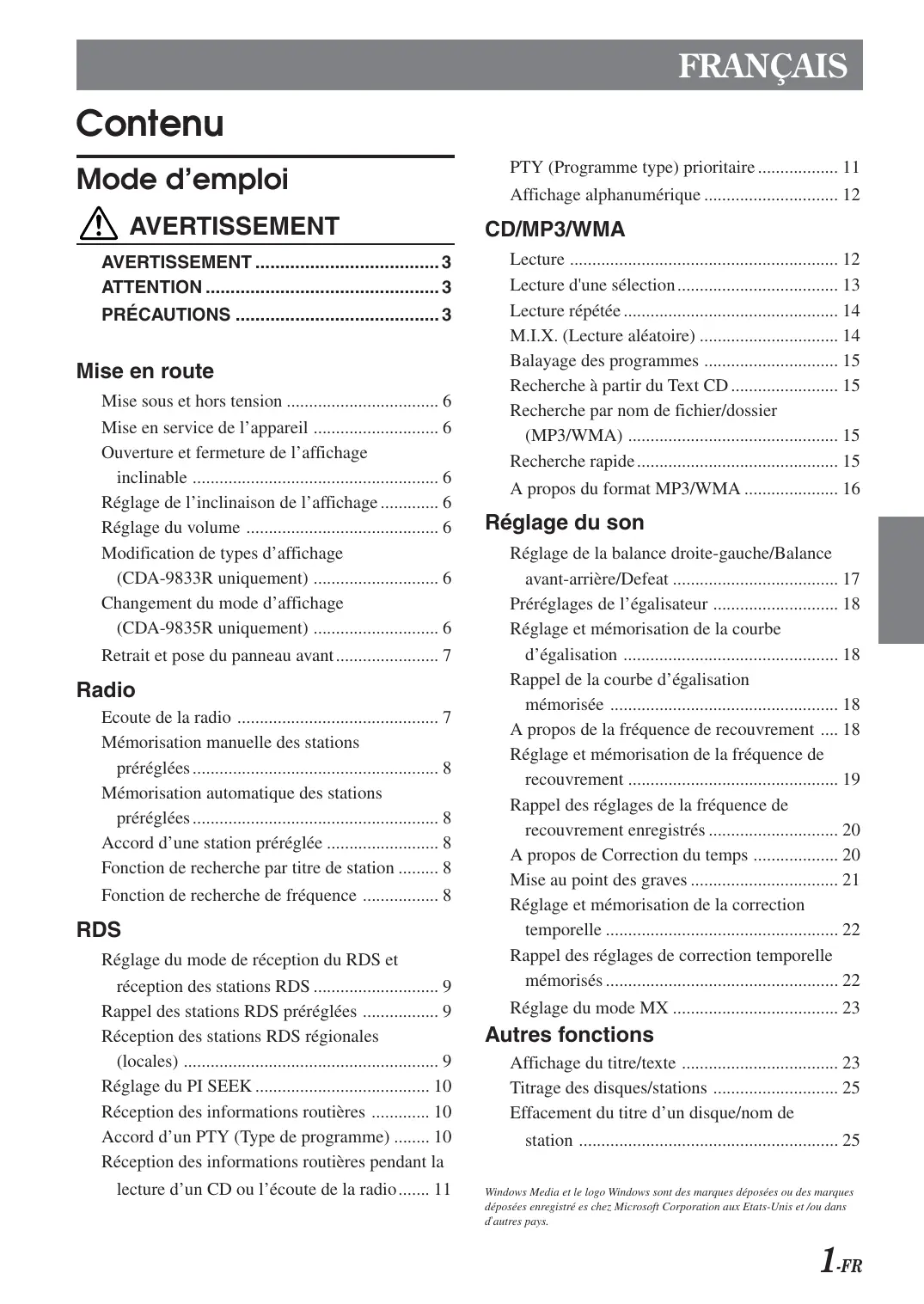 - A propos du format MP3/WMA p. 16