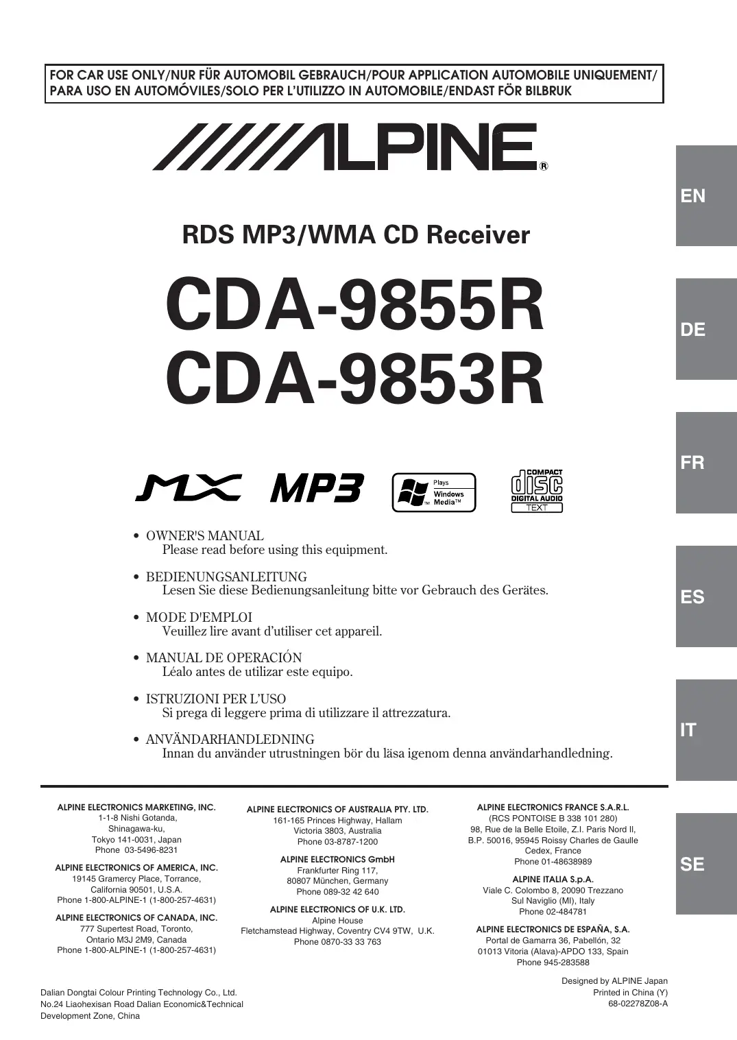 Retrouvez gratuitement la notice de l'appareil CDA-9853R ALPINE au format PDF.