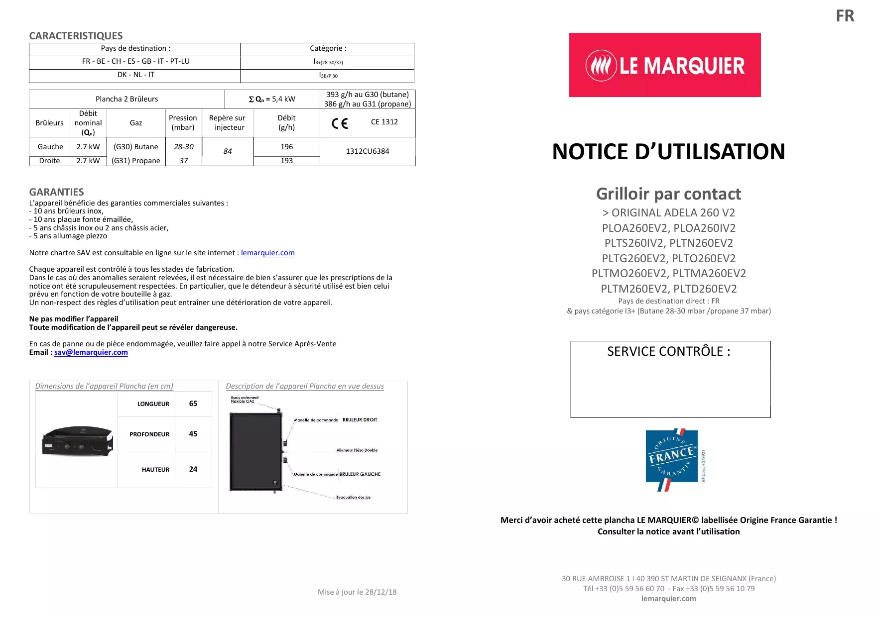 Merci d'avoir acheté cette plancha LE MARQUIER© labellisée Origine France Garantie !