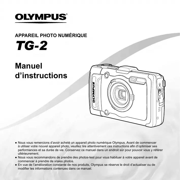 - Nous vous remercions d'avoir acheté un apparil photo numérique Olympus. Avant de commencer à utiliser notre nouvel apparil photo, veillez dire attentivement ces instructions afin d'optimiser ses performances et sa durée de vie. Conserveze ce manuel dans un endroit sur pour pouvoir vous y référer ultérieurement.