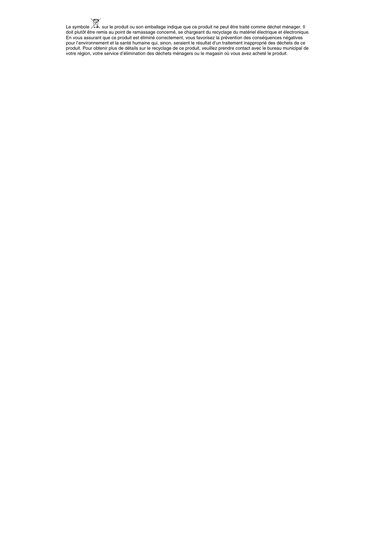 Si vous deviez déménager dans un autre pays au sein de l'Europe, votre garantie vous suit sous les conditions suivantes : • La garantie est pour la même durée et la même étendue en ce qui concerne la main d'oeuvre et les pièces qu'il est habituel pour cette marque ou cette gamme de produits dans le nouveau pays. Cette garantie se rapporte à vous et ne peut pas être transférée sur un autre utilisateur. Votre nouveau domicile se trouve dans la Communauté Européenne (CE) ou dans l'Association européenne de libre-échange (A.E.L.E.). Le produit est installé et utilisé selon nos instructions et est utilisé exclusivement à des fins domestiques, c’est-à-dire pour un ménage normal. L'alimentation en courant correspond à la spécification de la plaque signalétique. Le produit est installé en tenant compte des réglementations de votre nouveau pays.