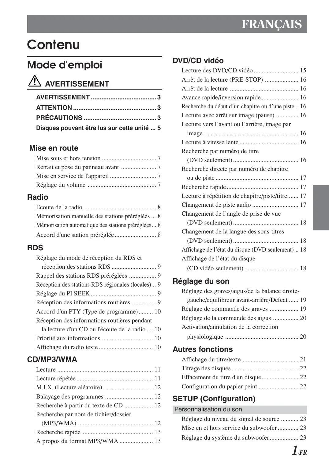 - A propos du format MP3/WMA p. 13