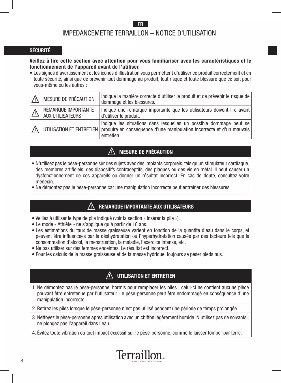 IMPEDANCEMETRE TERRAILLON – NOTICE D’UTILISATION