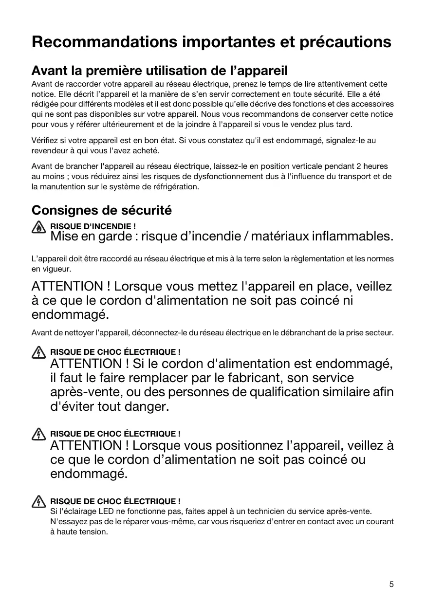 Recommendations importantes et précautions 5