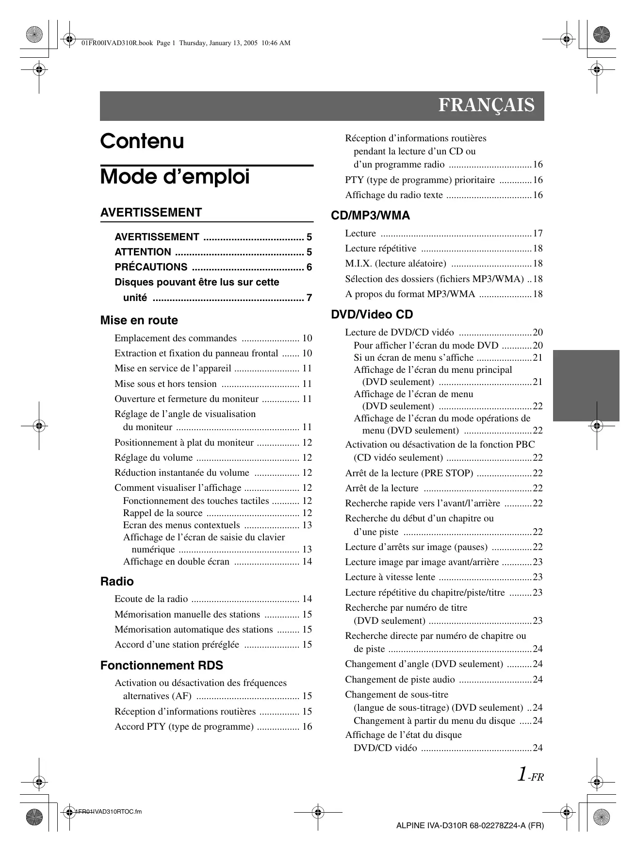 Retrouvez gratuitement la notice de l'appareil IVA-D310R ALPINE au format PDF.