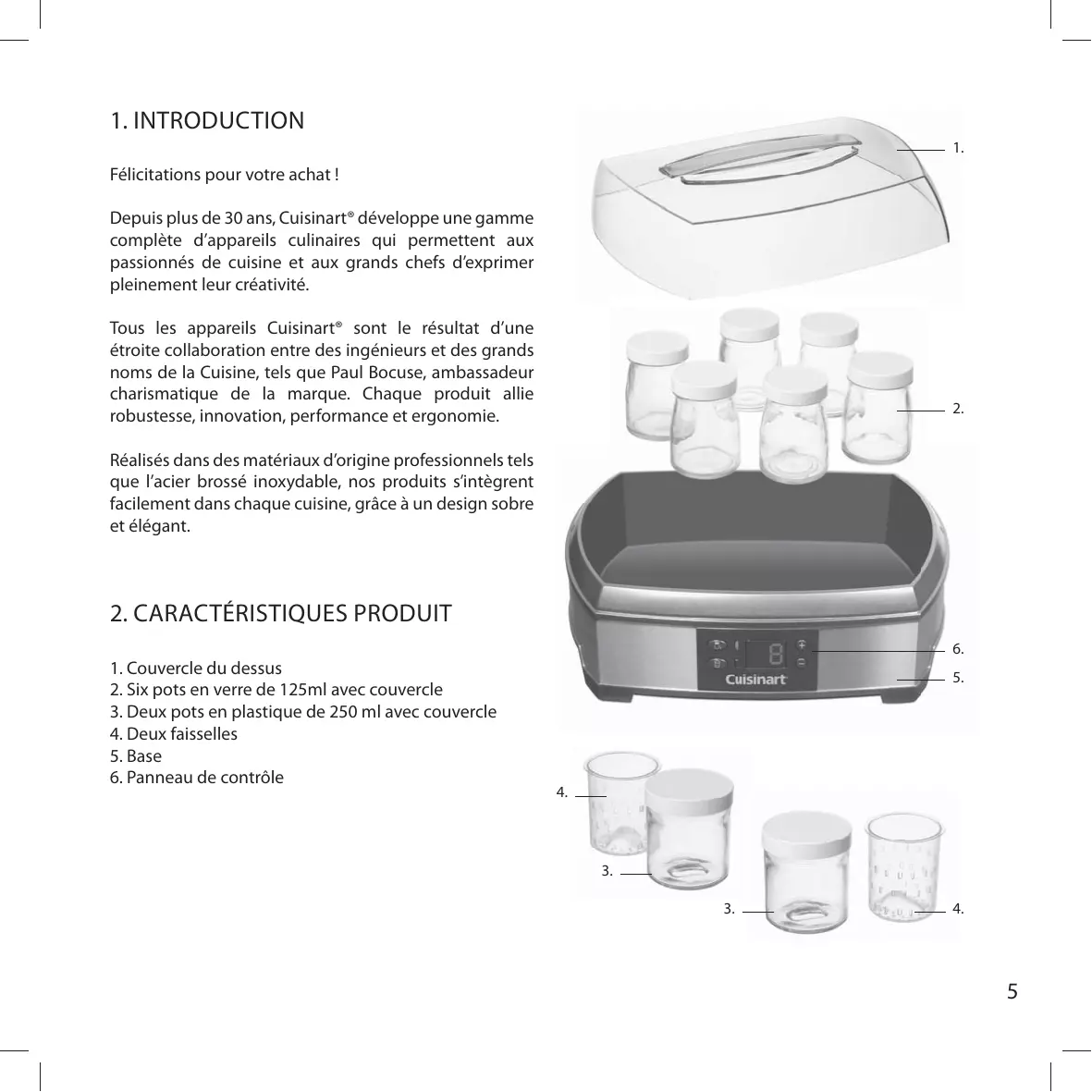 Félicitations pour votre achat ! Depuis plus de 30 ans, Cuisinart® développe une gamme complète d’appareils culinaires qui permettent aux passionnés de cuisine et aux grands chefs d’exprimer pleinement leur créativité. Tous les appareils Cuisinart® sont le résultat d’une étroite collaboration entre des ingénieurs et des grands noms de la Cuisine, tels que Paul Bocuse, ambassadeur charismatique de la marque. Chaque produit allie robustesse, innovation, performance et ergonomie.
