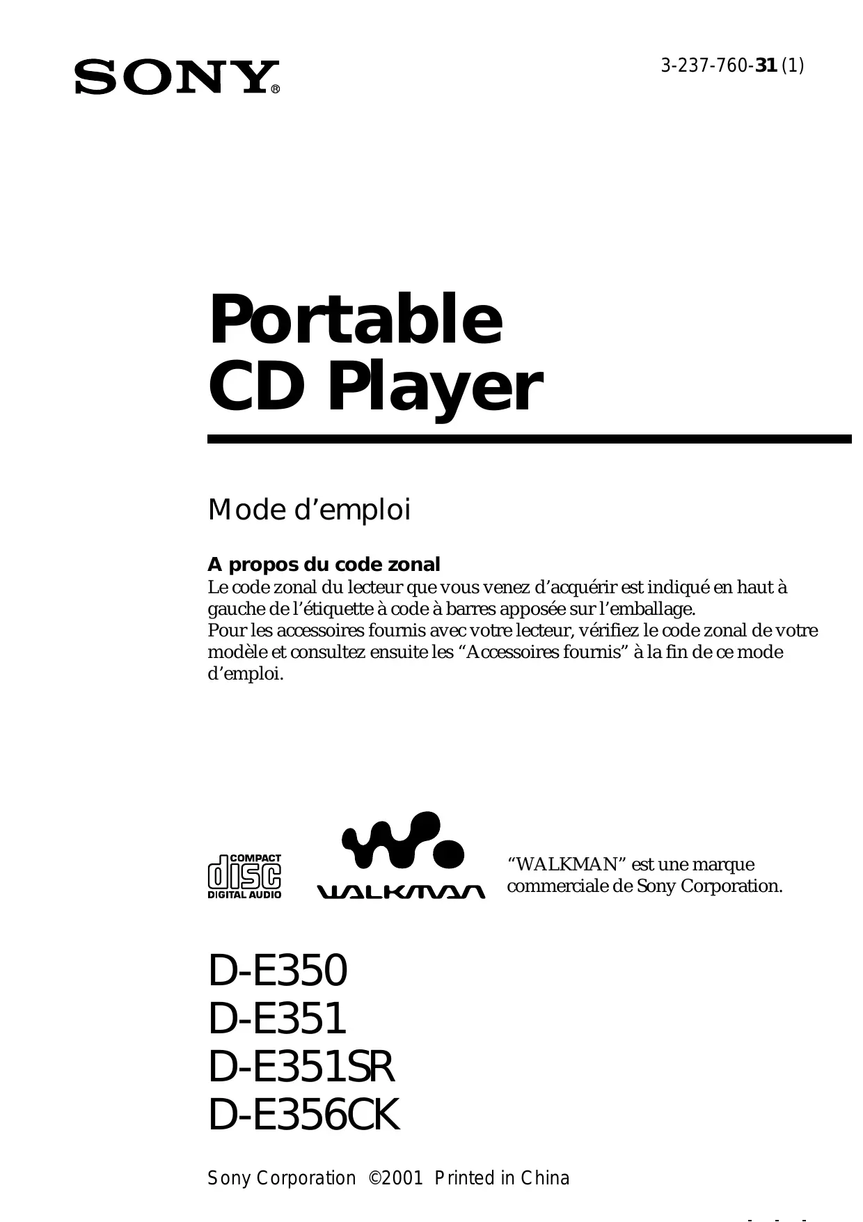 D-E350 D-E351 D-E351SR D-E356CK Sony Corporation ©2001 Printed in China
