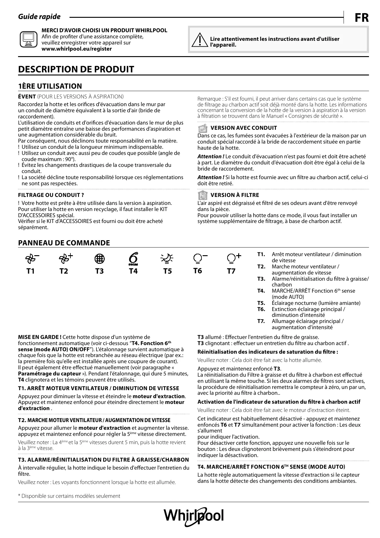 WVS93FLTK - Hotte WHIRLPOOL - Notice d'utilisation et mode d'emploi gratuit