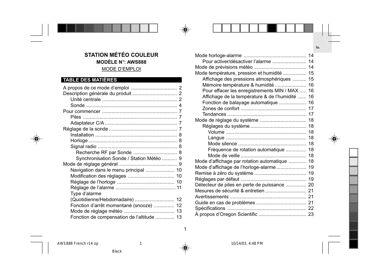 AWS 888 - Station Météo OREGON SCIENTIFIC - Notice d'utilisation et mode d'emploi gratuit