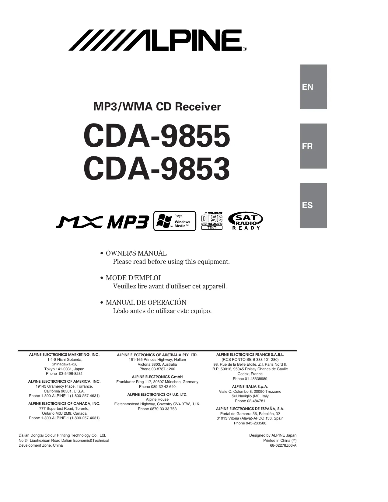 Retrouvez gratuitement la notice de l'appareil CDA-9853 ALPINE au format PDF.