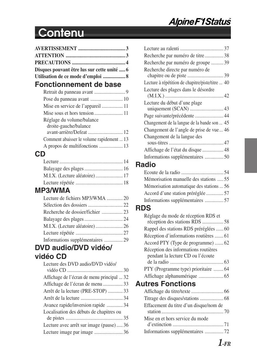 DVI-9990R F1 STATUS - Autoradio ALPINE - Notice d'utilisation et mode d'emploi gratuit