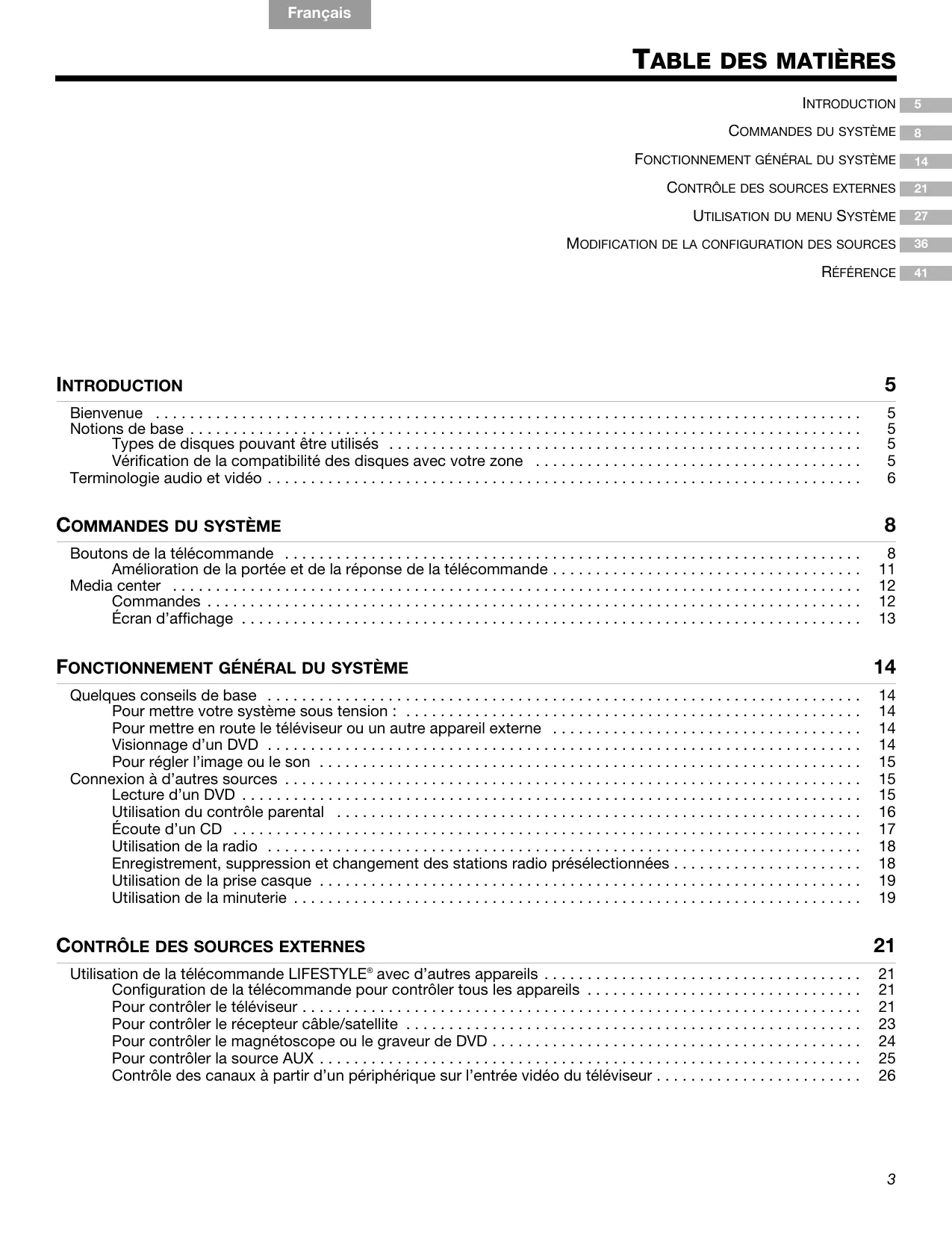 Nous vous remercions d'avoir acheté un système home cinema Bose® LIFESTYLE®. Grâce aux technologies déposées de Bose et à la conception novatrice des systèmes LIFESTYLE®, cet équipement, à la fois élégant et simple d'utilisation, vous permettra d'obtenir la meilleure des qualités en termes de son et d'image.