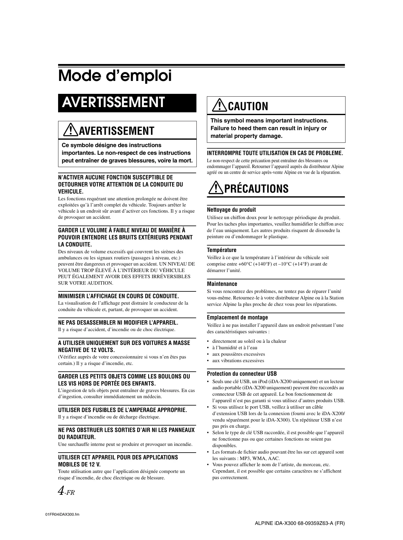 MODE D'EMPLOI IDA-X200 ALPINE
