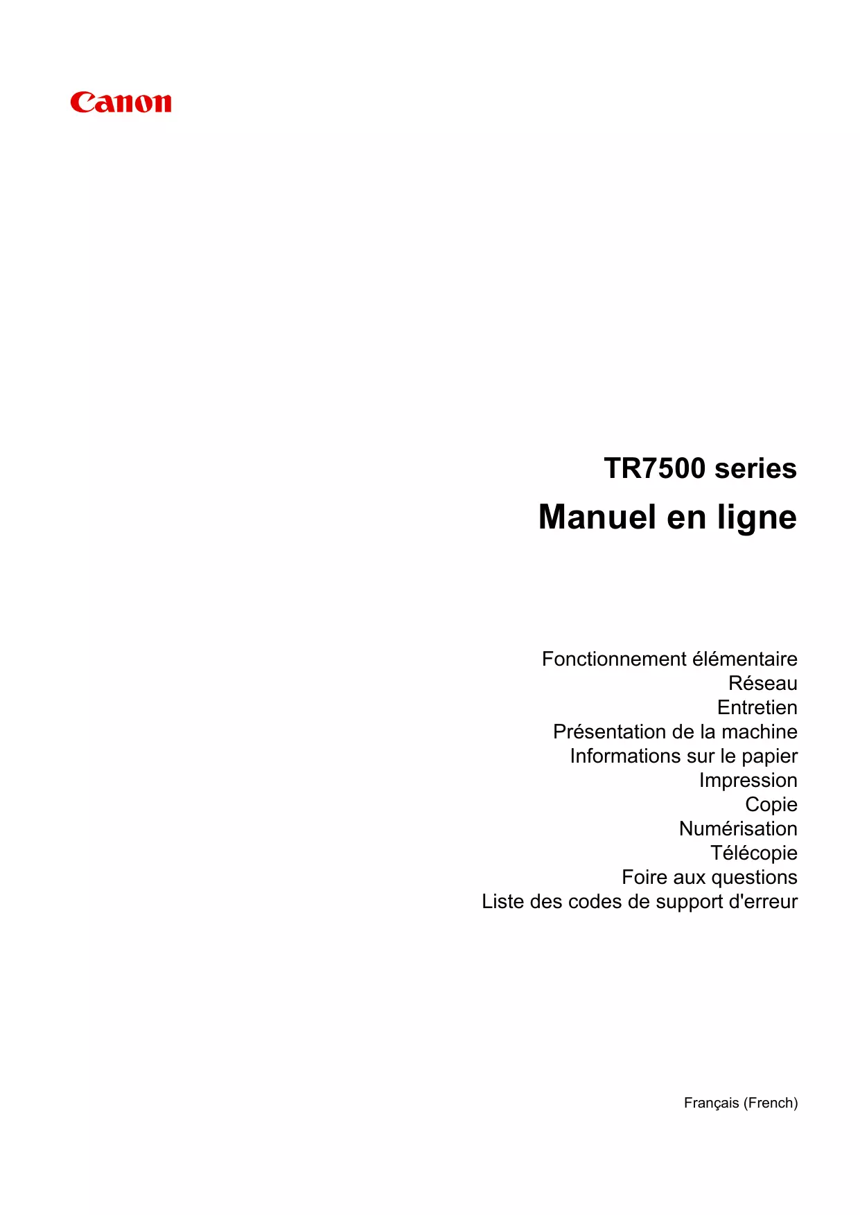 TR7550 - Imprimante multifonction CANON - Notice d'utilisation et mode d'emploi gratuit