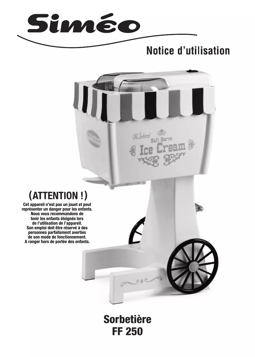 FF250 - Sorbetière SIMEO - Notice d'utilisation et mode d'emploi gratuit