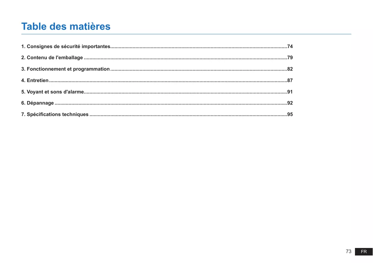1. Consignes de sécurité importantes Lors de l'utilisation d'un appareil électrique, des précautions de base doivent toujours être respectées, dont les suivantes :