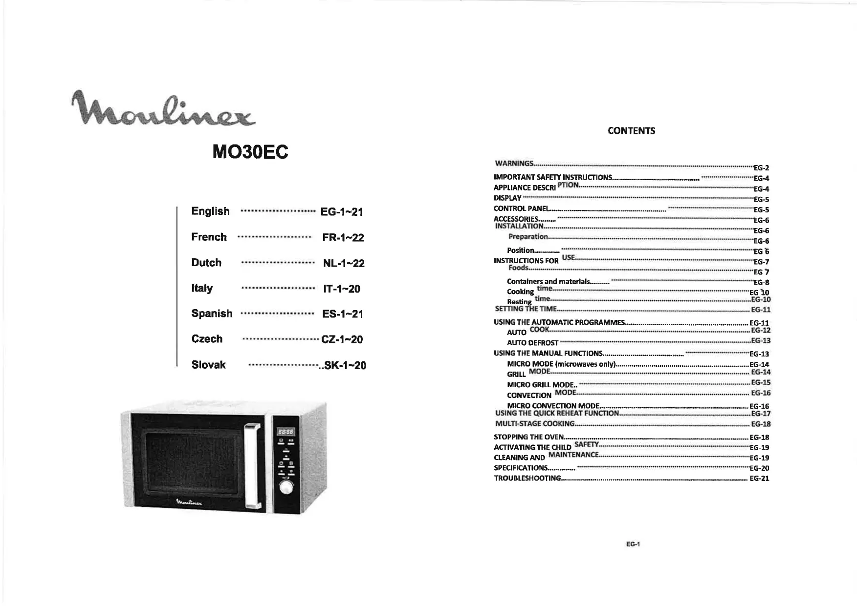 Retrouvez gratuitement la notice de l'appareil MO30EC MOULINEX au format PDF.