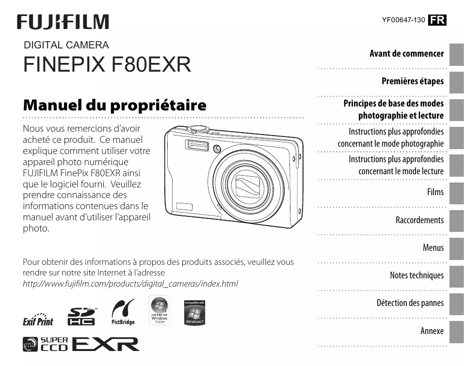 F80 EXR - Appareil photo numérique FUJIFILM - Notice d'utilisation et mode d'emploi gratuit