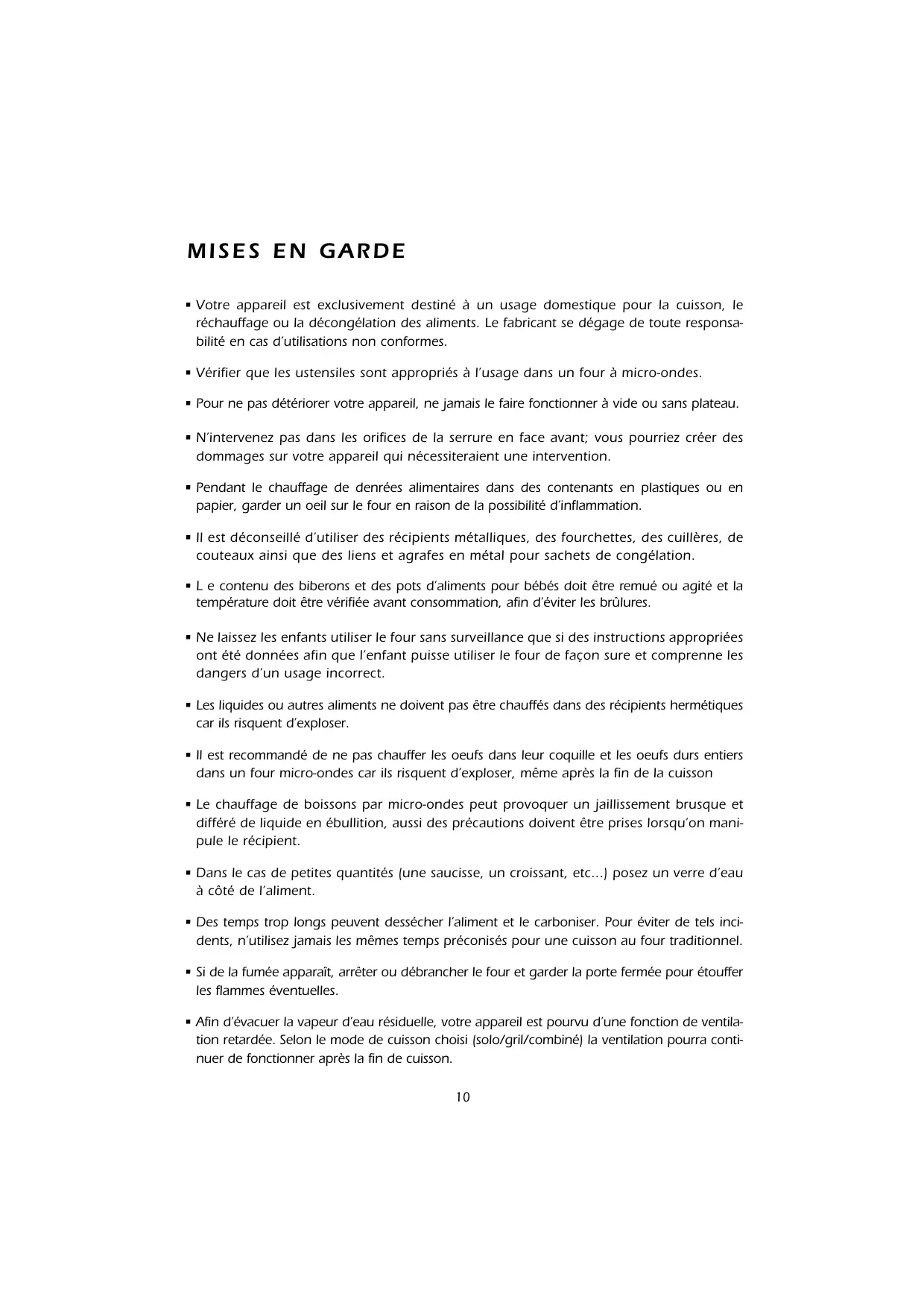 - Votre appareil est exclusivement destiné à un usage domestique pour la cuisson, le réchauffage ou la décongélation des aliments. Le fabricant se dégage de toute responsabilité en cas d’utilisations non conformes.