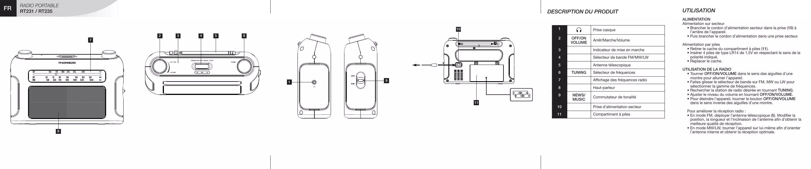 Retrouvez gratuitement la notice de l'appareil RT235 THOMSON au format PDF.