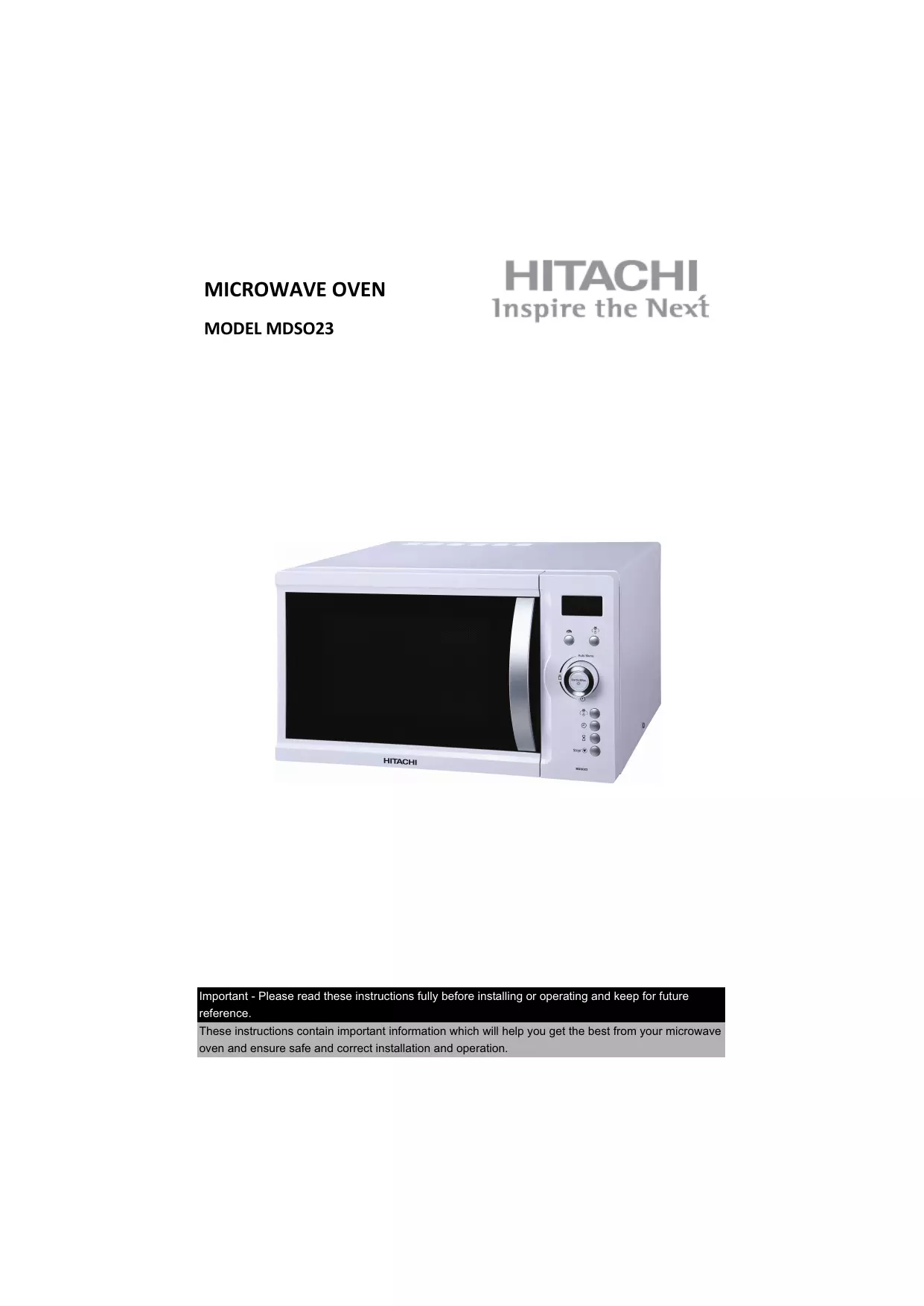 MDS023 - Micro-ondes HITACHI - Notice d'utilisation et mode d'emploi gratuit