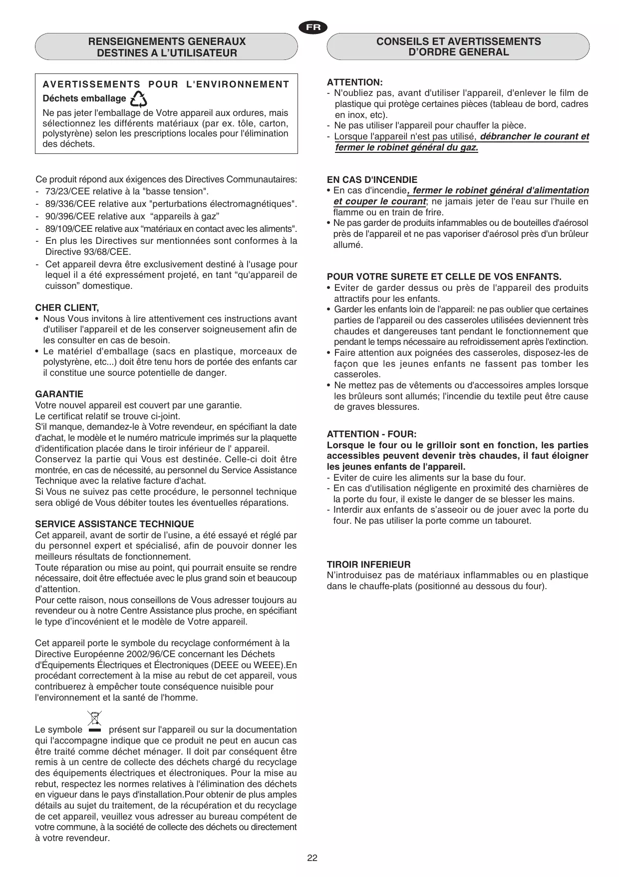 - Cét apparéil devra être exclusivement destiné à l'usage pour lequel il a été expressément projeté, en tant "qu' apparéil de cuisson" domestique.