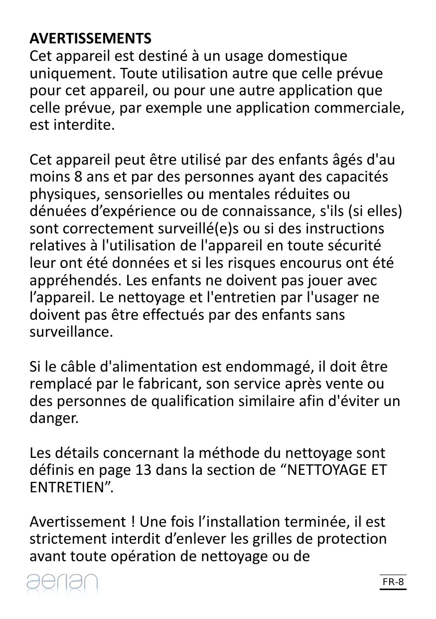 ASF35 - Ventilateur AERI - Notice d'utilisation et mode d'emploi gratuit