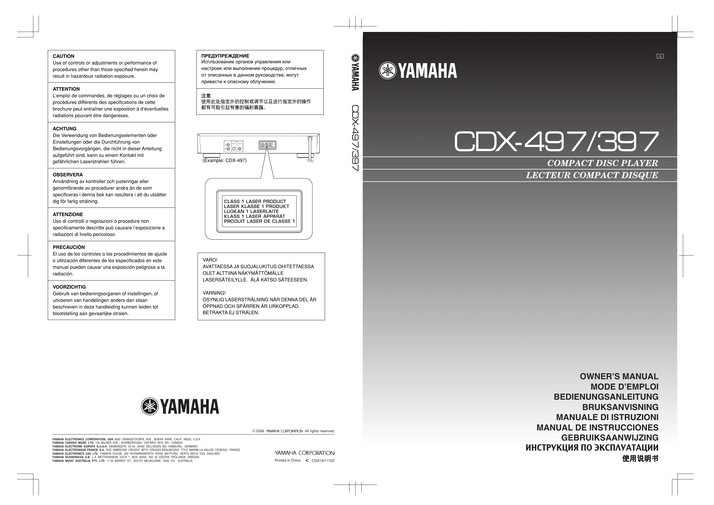 Téléchargez la notice de votre Lecteur CD au format PDF gratuitement ! Retrouvez votre notice CDX-493 - YAMAHA et reprennez votre appareil électronique en main. Sur cette page sont publiés tous les documents nécessaires à l'utilisation de votre appareil CDX-493 de la marque YAMAHA.