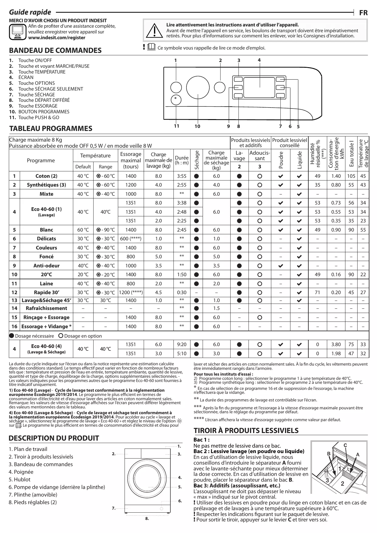- Pour obtenir des informations relatives à la réparation et à la maintenance, l'utilisateur est invite à visiter le site www.indesit.com Il est possible de consulter les informations sur le modele grâce au code QR figurant sur l'etiquette energetique. L'etiquette inclut également l'identifant du modele à utiliser si vous consultez le portail de la base de données à l'adresse https://eprel.ec.europa.eu.