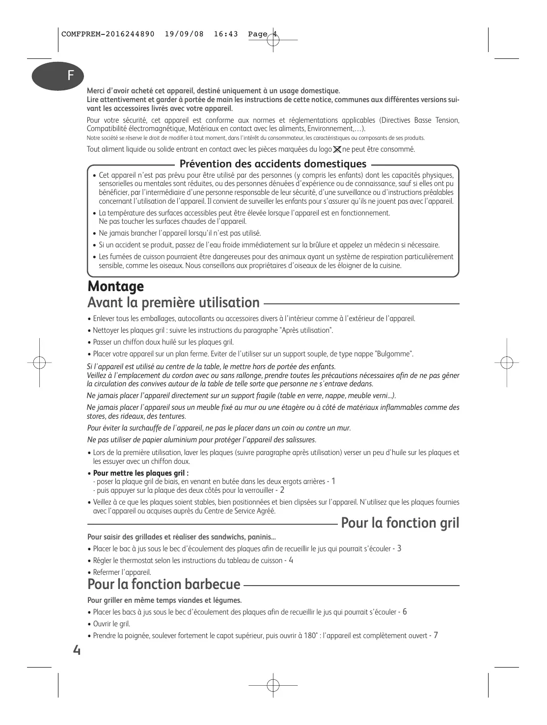 Pour toute sécurité, cet appeareil est conforme aux normes et reglementations applicables (Directives Basse Tension, Compatibility electromagnetique, Matieres en contact avec les alimentes, Environnement,...).