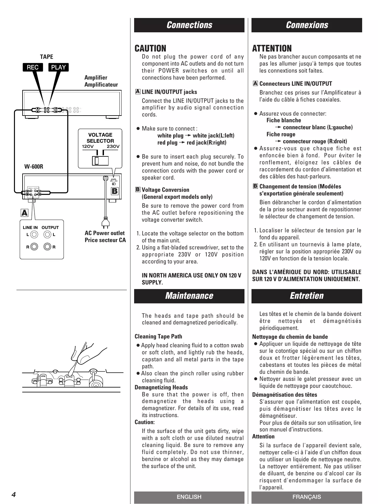 ENGLISH FRANÇAIS The heads and tape path should be cleaned and demagnetized periodically.
