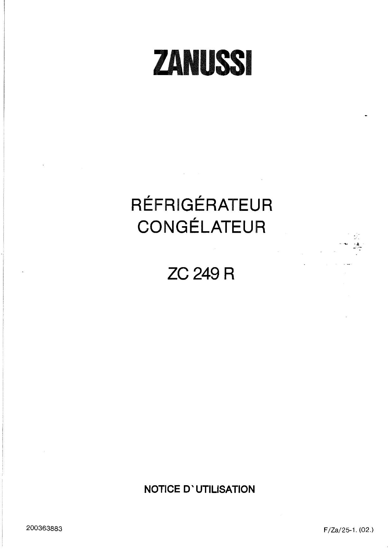 Retrouvez gratuitement la notice de l'appareil ZC 249R/DF ZANUSSI au format PDF.