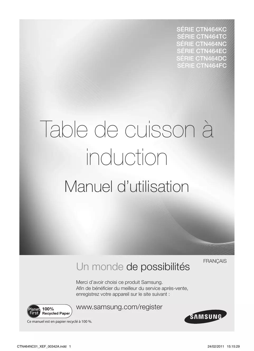 Téléchargez la notice de votre Plaque de cuisson au format PDF gratuitement ! Retrouvez votre notice CTN464NCO1 - SAMSUNG et reprennez votre appareil électronique en main. Sur cette page sont publiés tous les documents nécessaires à l'utilisation de votre appareil CTN464NCO1 de la marque SAMSUNG.