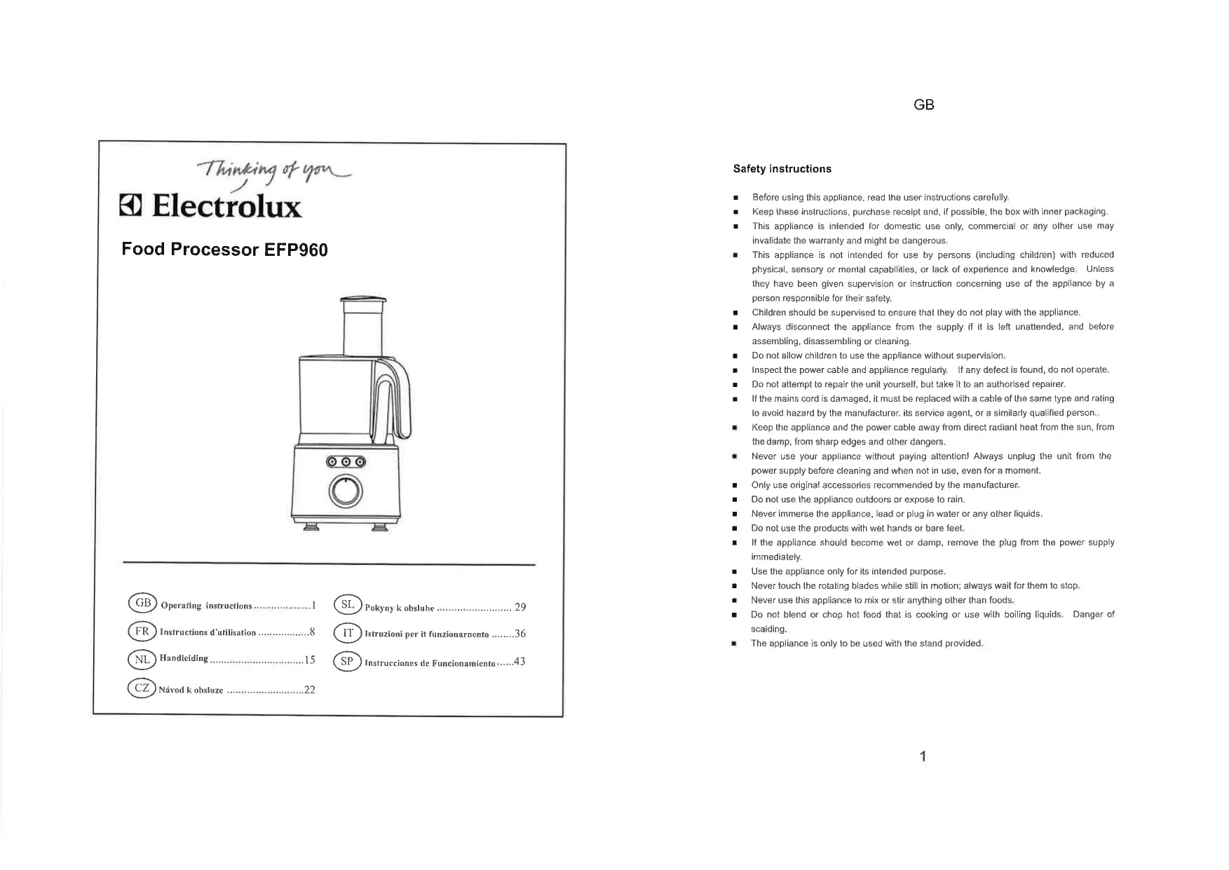 EFP 960 BLANC - Robot de cuisine ELECTROLUX - Notice d'utilisation et mode d'emploi gratuit