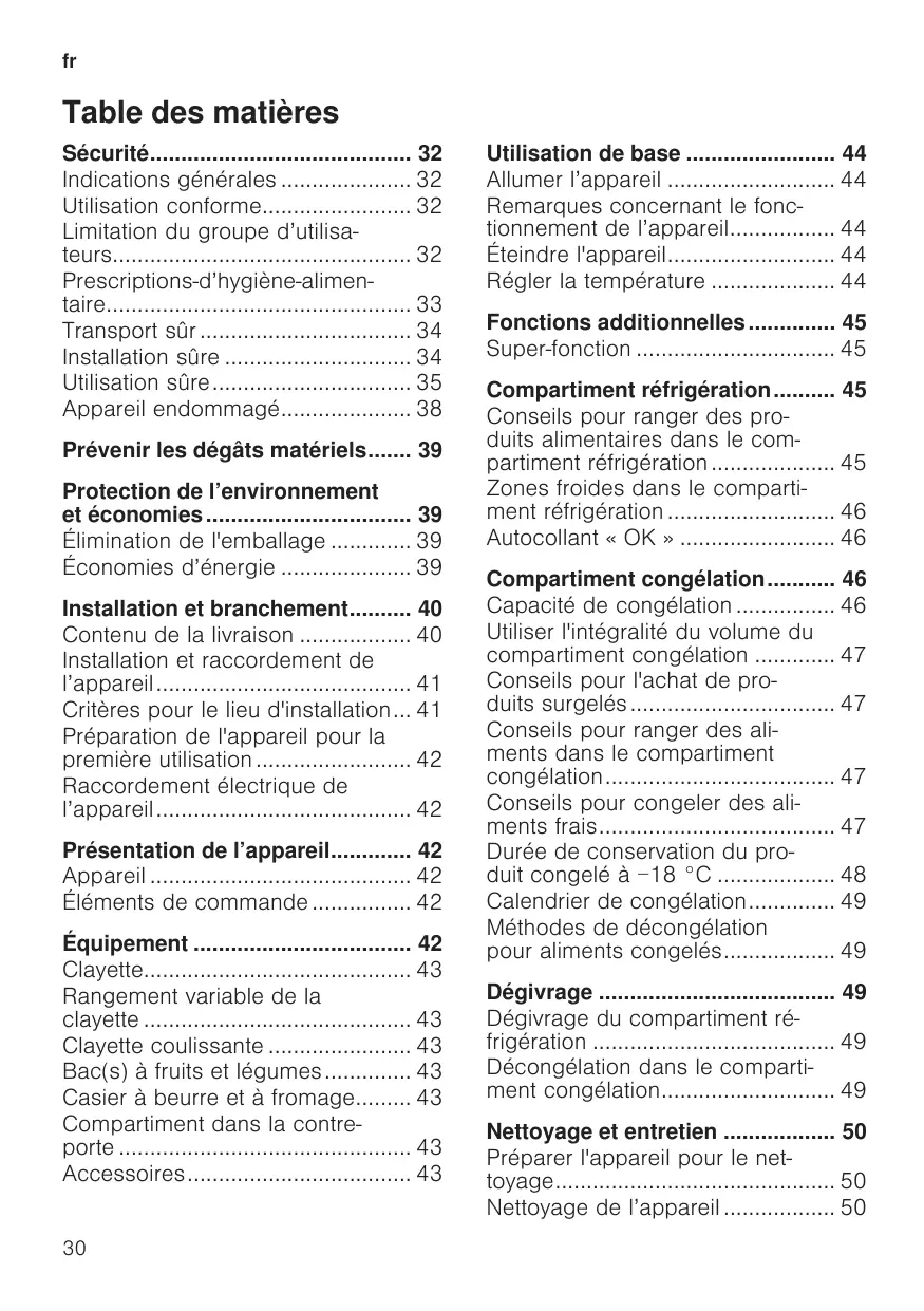 - Compartiment réfrigération p. 45