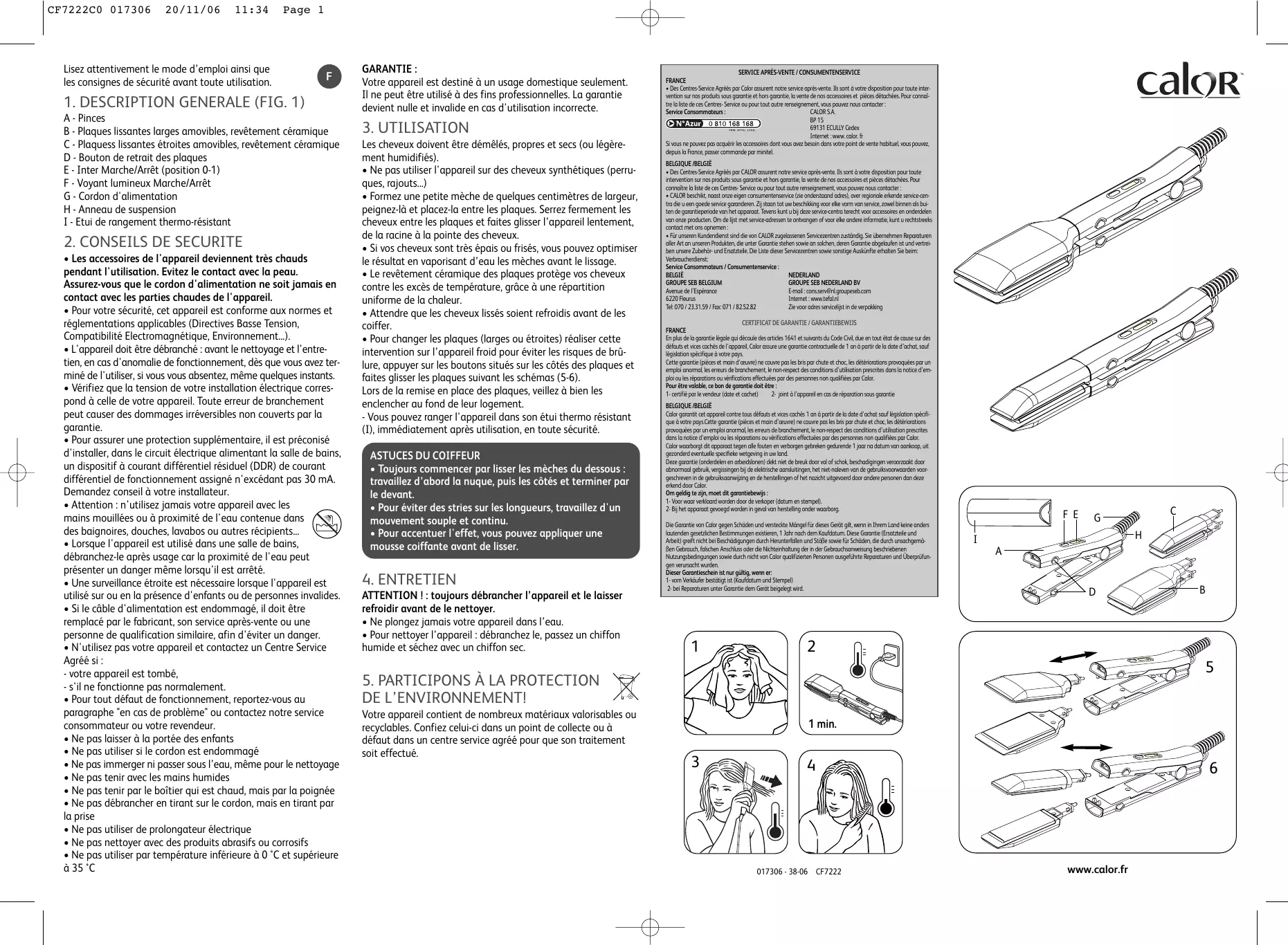 CF7222COMULTILONG - Fer à lisser CALOR - Notice d'utilisation et mode d'emploi gratuit