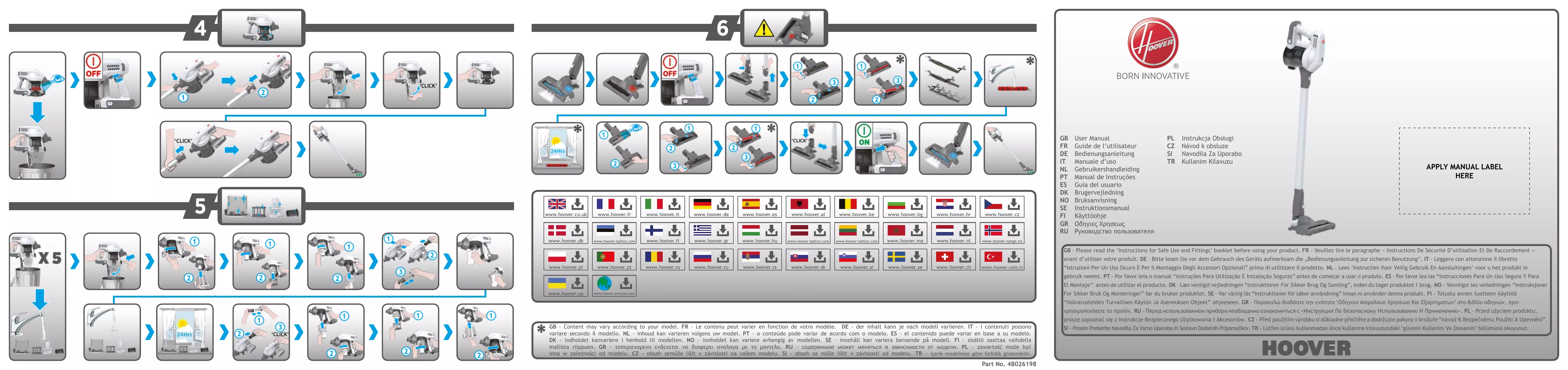 HF122PTA - Aspirateur balai HOOVER - Notice d'utilisation et mode d'emploi gratuit